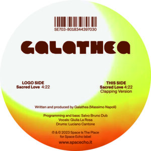 In addition to the now classic digital release, ‘Sacred Love’ sees the light of day in 7″ vinyl format (45 rpm) in two versions. An Afro-American track with a Tony Allen-esque super afrobeat rhythm opens side A (Logo Side) in a hypnotic jazz version performed by singer Giulia La Rosa, who also wrote the lyrics, vaguely reminiscent of Nina Simone’s “See-Line Woman”.